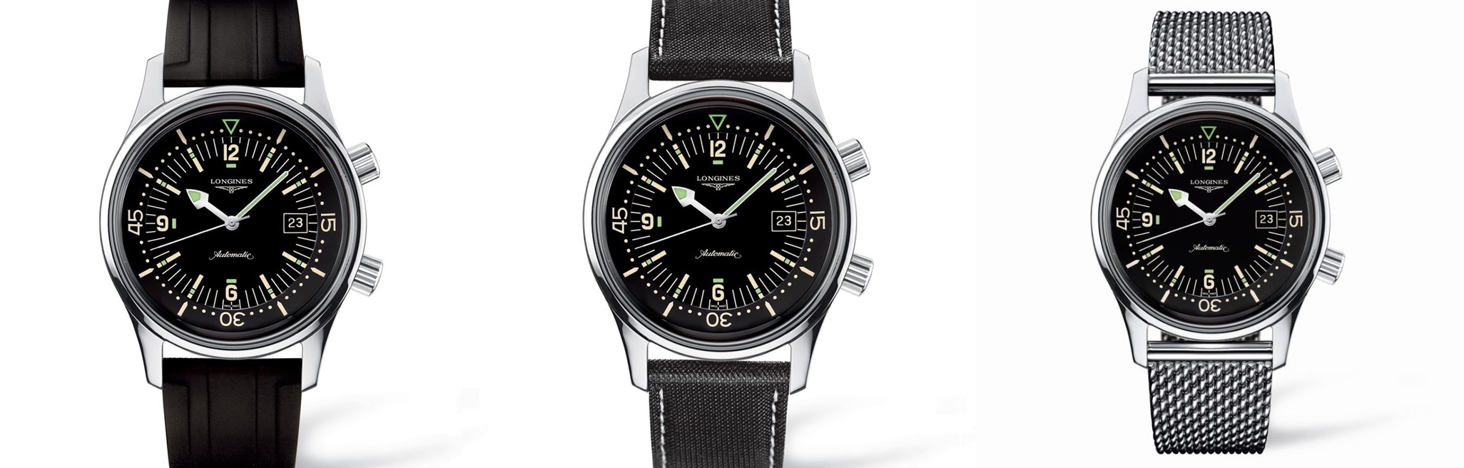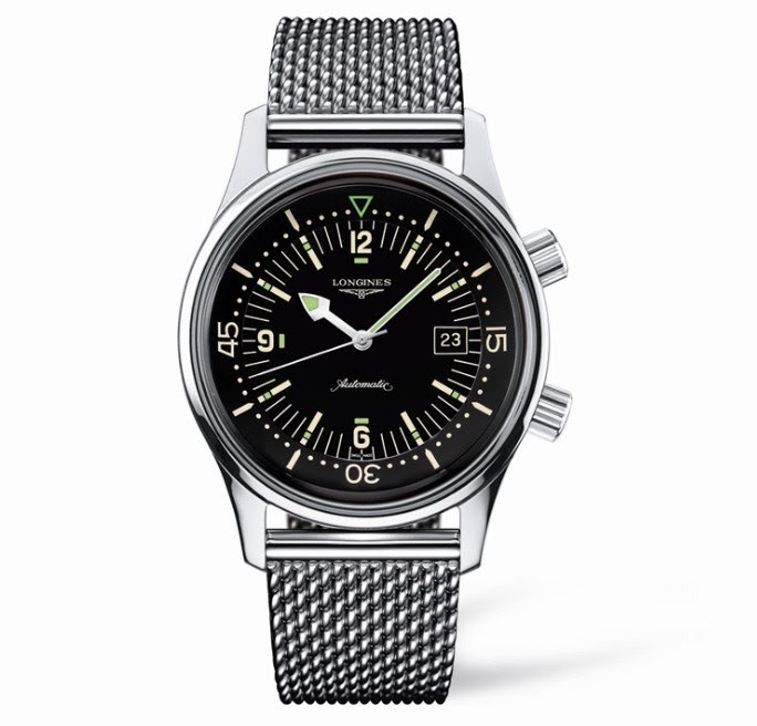A decade later, and with the Legend Diver still looking fresh and attractive, Longines have decided to mark this anniversary with a retro Milanese mesh bracelet addition, which means that it is now available with three strap/ bracelet options, the others being rubber and cowhide.
