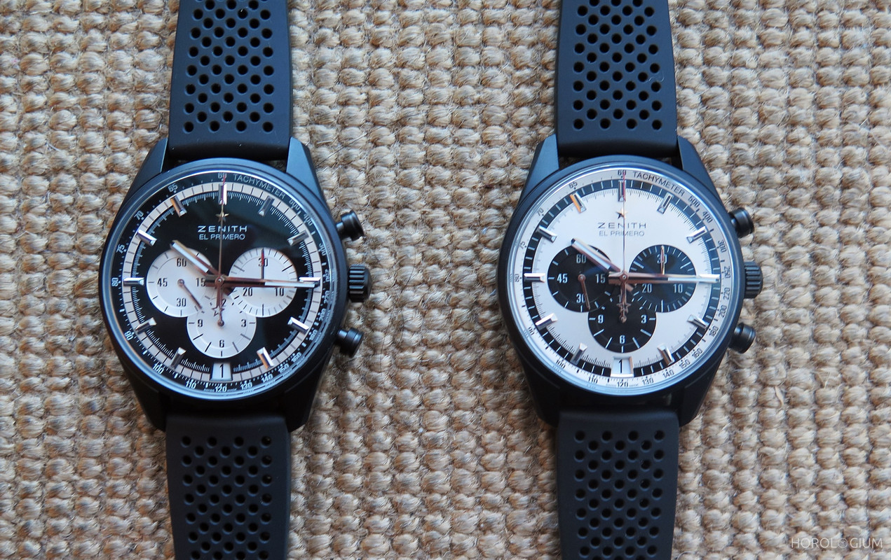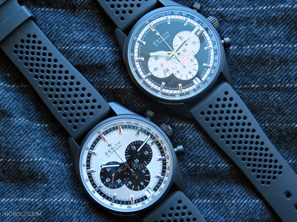 Earlier this year Zenith launched two new El Primero 36’000 VPH chronographs with classic ‘panda’ (black-on-white) and ‘reverse panda’ (white-on-black) dials in black ceramicised aluminium cases. Both of these have finally arrived in Australia, and we had the opportunity to spend some time with them.