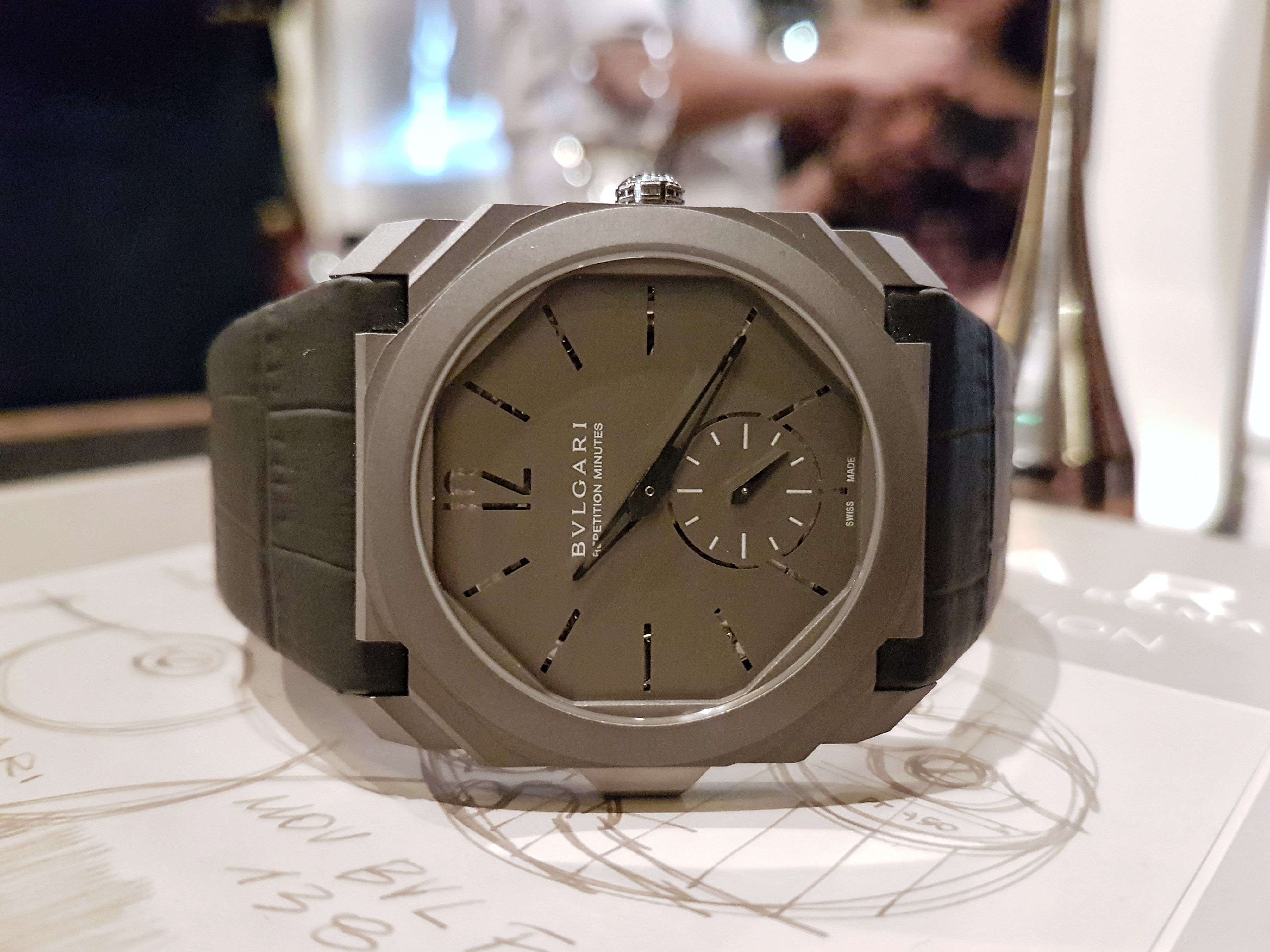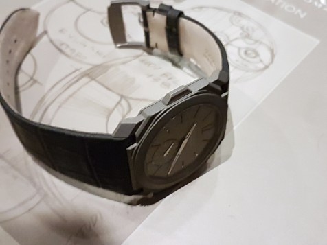The Octo Finissimo Minute Repeater comes on a suitably sporty matte-black vulcanised alligator strap on a folding titanium buckle. As I mentioned earlier, until you have it on your wrist it’s almost impossible to appreciate just how thin it is, nor how comfortably it sits.