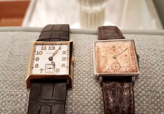 I wore my late 1930s Rolex as a comparative piece. As you can see from the photo below, they are within the same general range size wise (but not in thickness). In looking at them together, and also on the wrist of Jacky from Tiffany & Co (it is his wrist in the wristshot below), my views about the Square changed over the course of my time with it. Yes it is small, and yes a couple of more mm would have not have gone astray, but for a male wrist within the average size distribution, worn as a dress watch with a suit, the ‘numbers’ of it all don’t really matter. You can wear it as if it is an actual watch from that period.