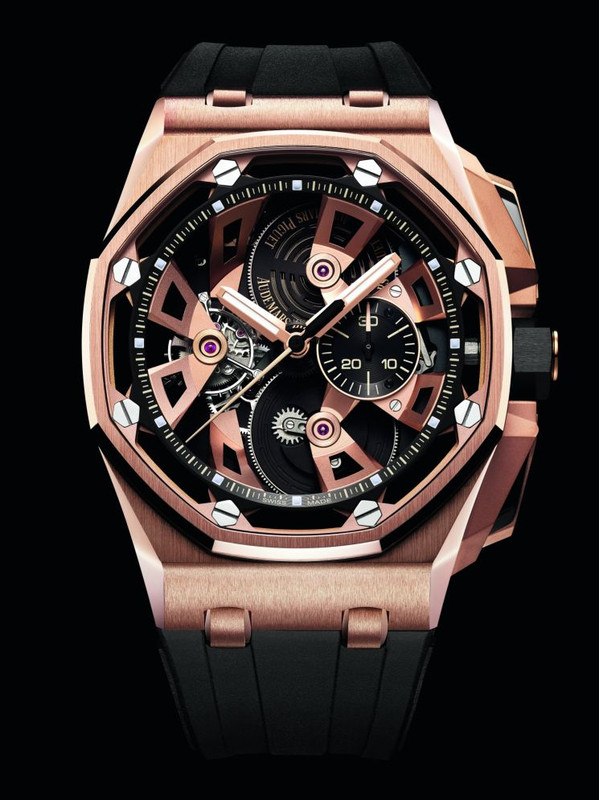 Coming on a black rubber strap with a matching metal pin buckle, the RRPs are CHF 285,000 for the stainless steel Royal Oak Offshore Tourbillon Chronograph, and CHF 325,000 for the pink gold model.