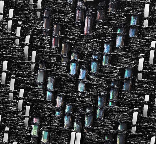 This is a modern spin on ‘Hikihaku’, a traditional weaving technique using metallic threads in which gold, silver, or even platinum leaf is combined with paper coated in lacquer, and then cut by hand into fine yarn that can then be woven.