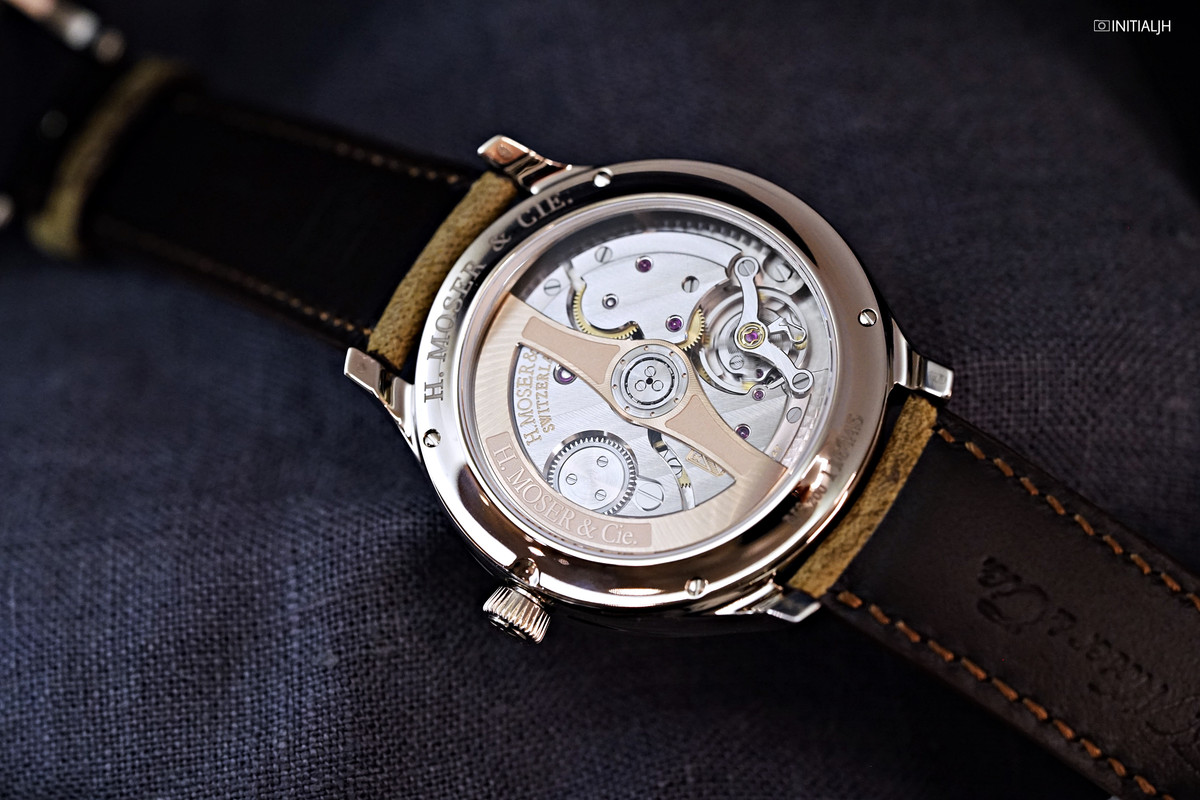 Powering this new time display is the new automatic Calibre C806 movement. Based on the Moser Calibre HMC 20, it was developed and produced jointly by Moser and sister brand Hautlence. The new movement’s escapement and hairspring are produced in-house by Precision Engineering AG, a sister company of H. Moser and Hautlence (all owned by MELB Holding). This new movement has a red gold oscillating weight, beats at 21,600VPH and has a power reserve of three days.