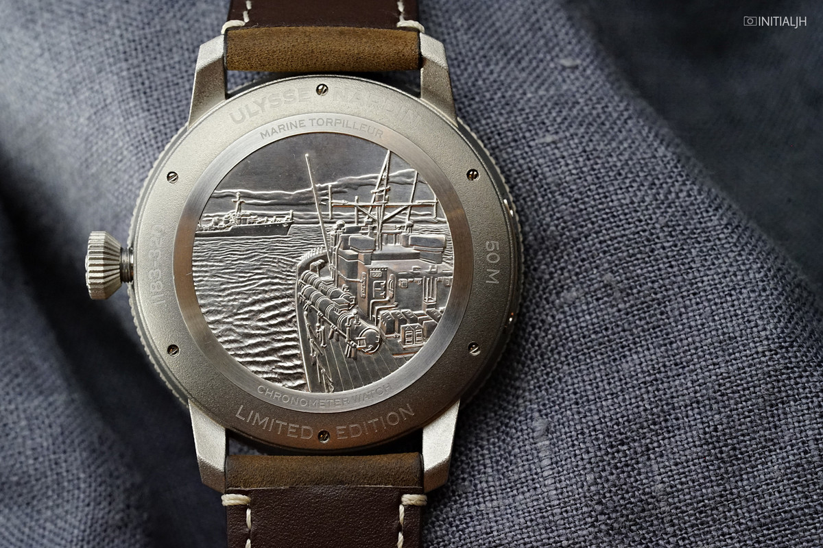 The words “Limited Edition” do appear as an engraving on the case back, along with an engraved image of a torpilleur. Behind this is the Ulysse Nardin in-house automatic COSC-certified Calibre UN-118. Something of note about this movement is the escapement, which is made of DIAMonSIL, a synthetic diamond grown on a silicon base. It was made in conjunction with Swiss firm Sigatec, and you can find out more about it at this link. There is also an oscillator with patented inertial balance wheel, and the patented silicon hairspring. The movement has a power reserve of 60 hours.