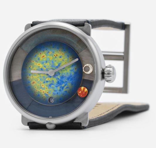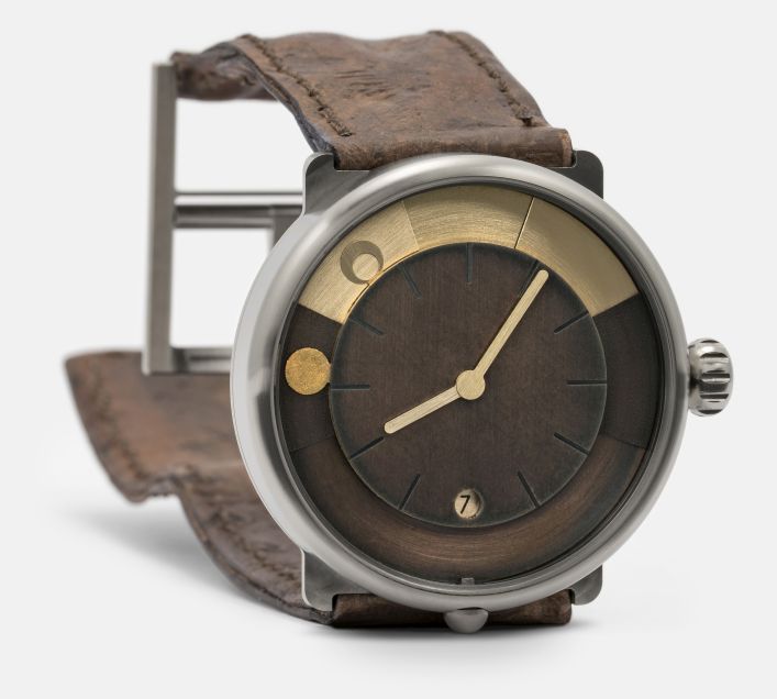 In a nutshell, apart from the time and date, the functions/ indications on this watch are the solar noon, sunrise/ sunset, a moonphase, and the positions of the sun and moon in the sky for your chosen location. Since the lengths of day and night vary according to one’s position, the watch is manufactured specifically to the location/ co-ordinates requested by the customer.
