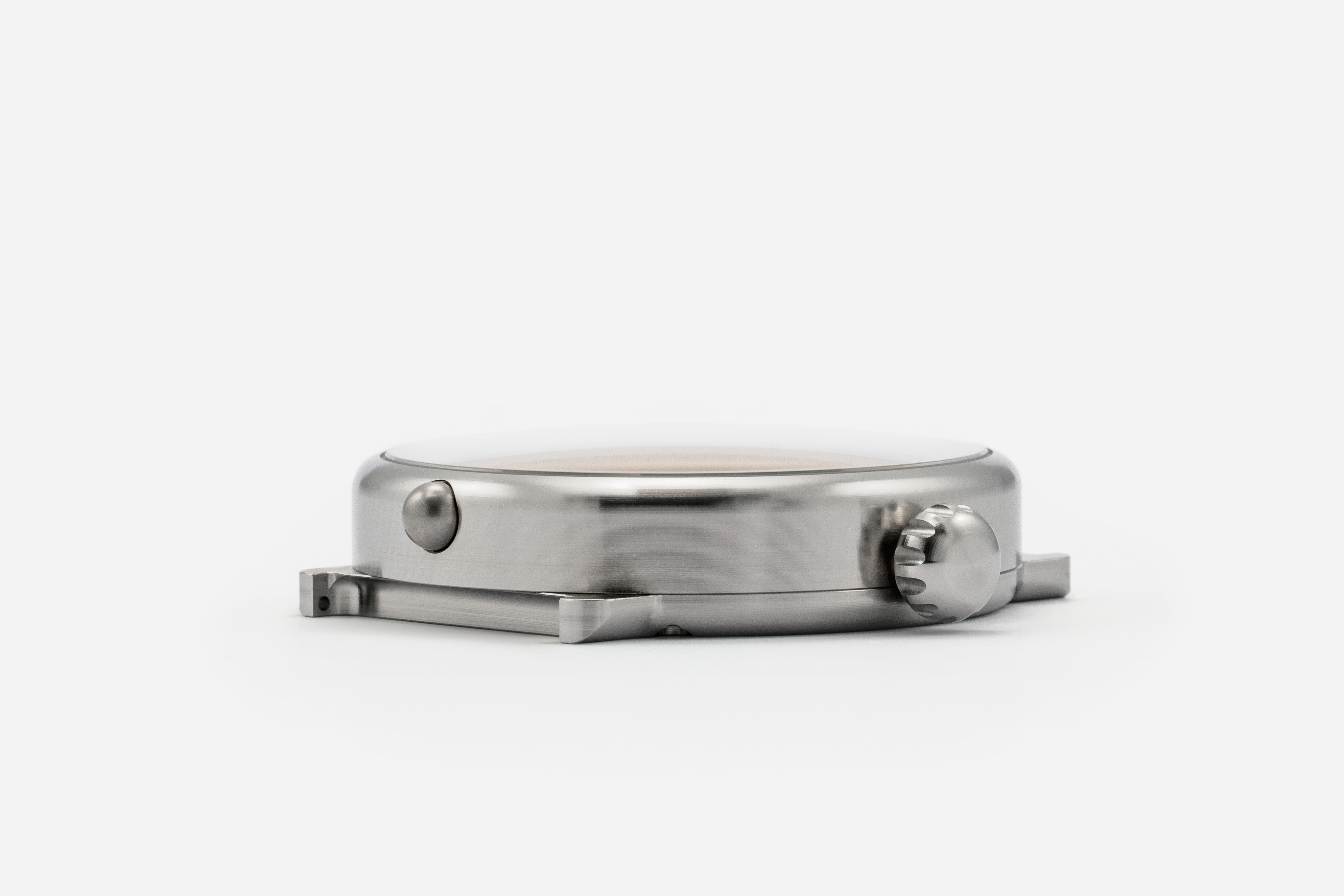 The two-part case designed by Ludwig Oechslin is 40mm, with a thickness of 11mm, although a 43mm version is available on request. The case is in either Grade 5 titanium or sterling silver but again, there are additional materials available upon request. They have a solid case back and the water resistance is 50m for the titanium cases and 30m for the sterling silver 925 cases. The cases are made by Helfenstein Mechanik AG in Alpnach, Switzerland. In fact the gear systems, dials, hands, cases, buckles, and crowns, are all made by the Helfenstein Mechanik.