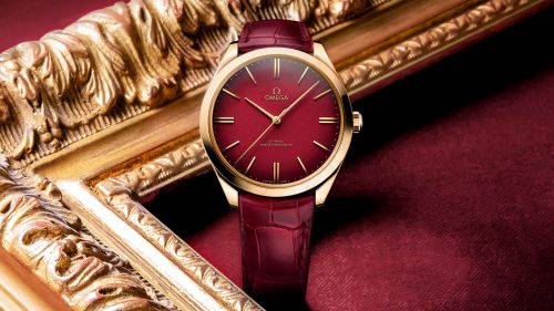 The new Trésor 125th Anniversary Edition comes on a matching burgundy leather strap with an 18 carat yellow gold buckle. Oh and if you’re wondering about the colour choice – think about the Omega branding and packaging…