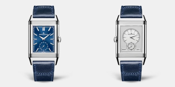 Coming in a 45.6mm x 27.4mm stainless steel case (thickness 8.5mm), the functions are as the name states, on a sunray-brushed dial with dauphine hands and applied hour markers. Because this is not a duoface, unlike the second Reverso we will mention, the caseback is solid, allowing you to either get it personalised by Jaeger-LeCoultre now, later, or perhaps not at all. As your whimsy takes you.
