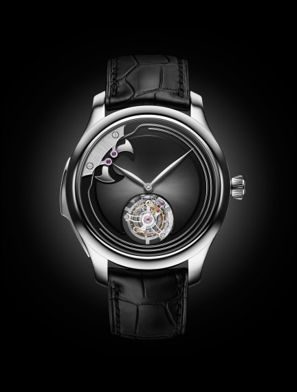 This new watch, unlike the earlier piece, does have hands, as well as the minute repeater and skeletonised one-minute flying tourbillon, with the same glossy black lacquered dial. Additionally, unlike the Swiss Alp Concept model, the hammers and chimes of the Endeavour Concept Minute Repeater Tourbillon are visible on the dial side.