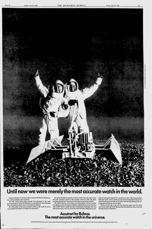 However, Bulova did end up having a decade-long partnership with NASA at that time, providing satellite missions with Accutron tuning fork technology. All up, they were part of 46 missions of the U.S. Space Program. All timekeeping instruments, including instrument panel clocks on NASA’s manned spacecraft missions leading up to and including the first moon walk on July 21, 1969, were equipped with Bulova Accutron tuning fork technology. Not only was Bulova a part of the on-board systems, but Buzz Aldrin and Neil Armstrong left a Bulova timer on the Sea of Tranquility to aid data transmission back to Earth.