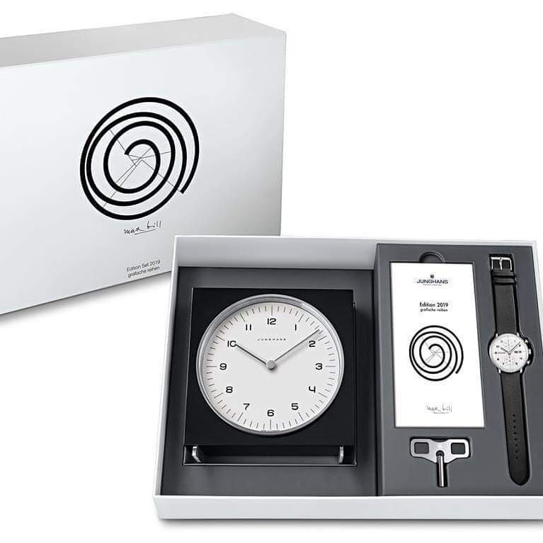 Junghans is commemorating its longstanding Max Bill partnership with a new special edition timepiece set for 2019 that consists of a watch and a table clock with a mechanical eight day movement. The back of each case is decorated with a work of art by Max Bill : the ‘variation 15’ from the ‘quinze variations sur un même thème’ series.