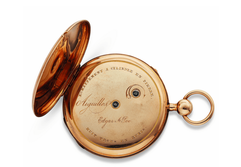 On 12 June 2019, Christie’s New York will hold a Fine Printed Books & Manuscripts auction, of which lot 209 will be Edgar Allan Poe’s engraved 18 carat gold pocket watch.
