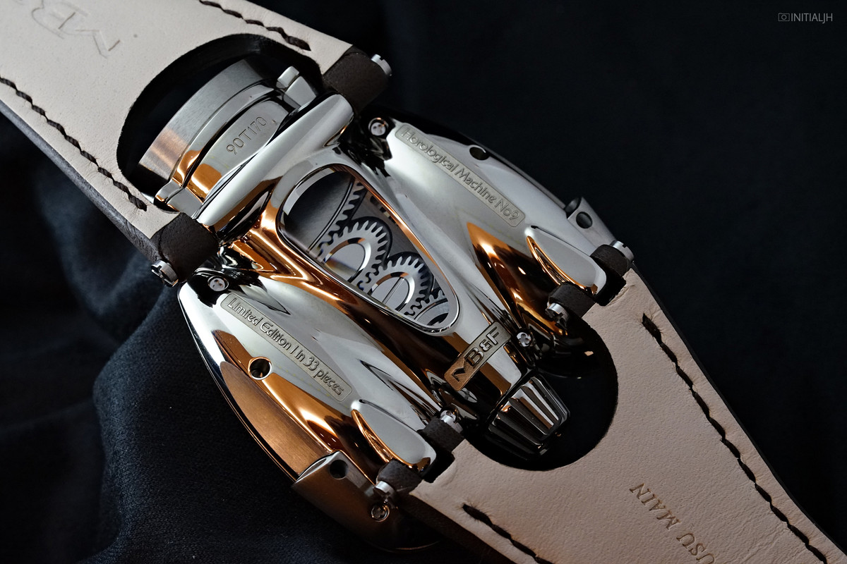 They are linked to a manually wound movement (MB&F’s fifteenth) created especially for the watch, which took three years of development to bring to fruition. One of the most notable and best things about MB&F as a brand is how for each one of their creations, the ‘Friends of the ‘F’ in their name who were involved in it, from concept to movement parts to the strap and even the writer of the text for their press releases, is named. For the HM9’s movement, it is Guillaume Thévenin of MB&F.