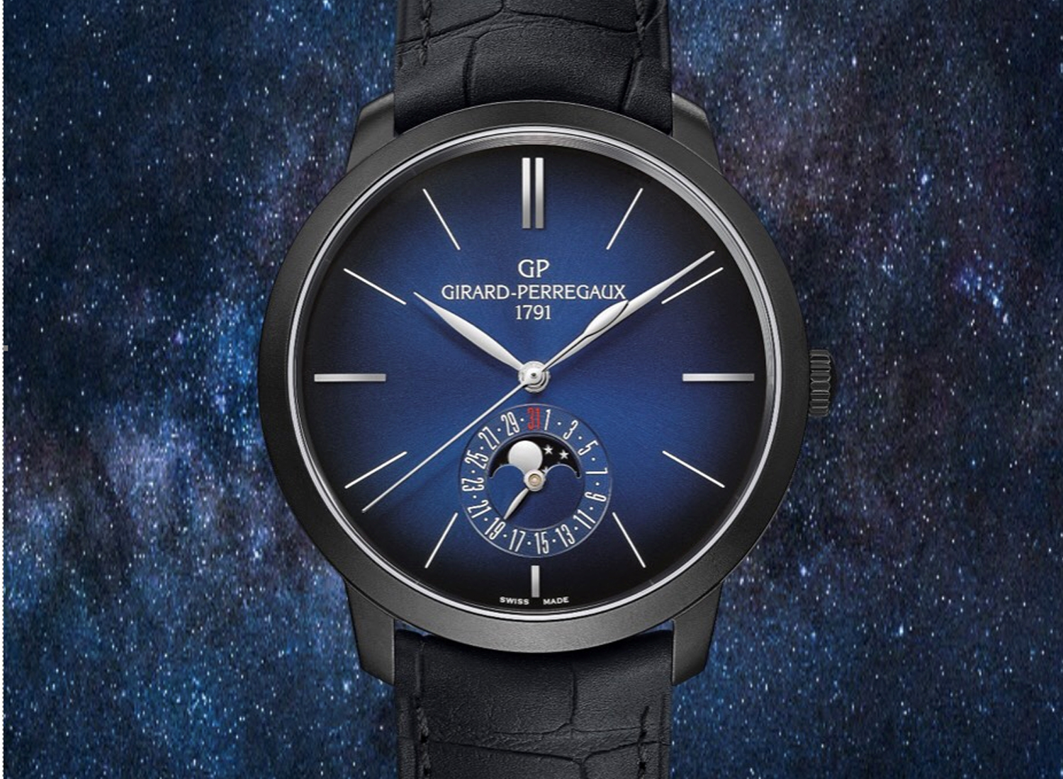 Following on from Girard-Perregaux’s blackened ‘Earth to Sky’ limited edition piece released earlier this year, they have now launched a similarly black and blue themed variant of their popular 1966 moon phase model.