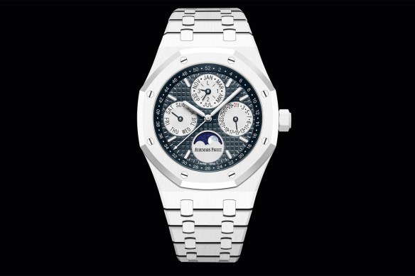 Visible behind the case back is the automatic Calibre AP 5134 that comes in the standard Royal Oak Perpetual Calendar 41 models, but which also makes an appearance in 2019’s Perpetual Calendar from the slightly divisive new CODE 11:59 collection. It beats at 19,800VPH and has a power reserve of 40 hours.