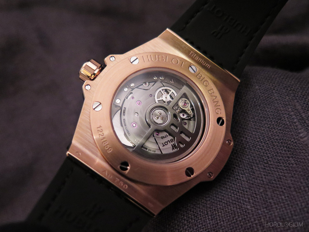 Inside is the automatic Calibre HUB1710 beating at 28,800VPH and with a power reserve of 50 hours.