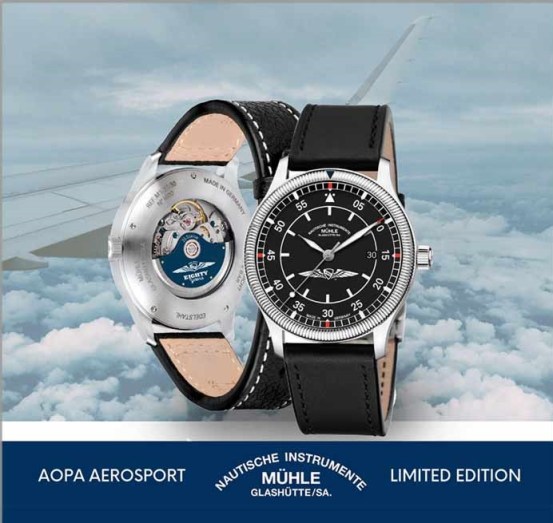 Mühle-Glashütte has launched a new watch in partnership with the AOPA (Aircraft Owners and Pilots Association), the world’ largest association for aviation enthusiast and pilots. The AOPA AeroSport is a limited edition (500 pieces) watch created to mark the organisation’s 80th year.
