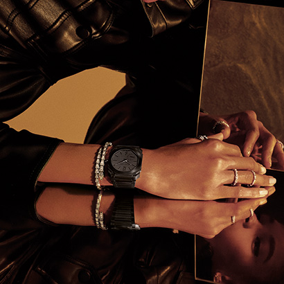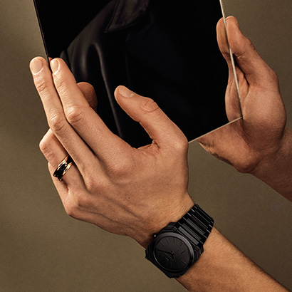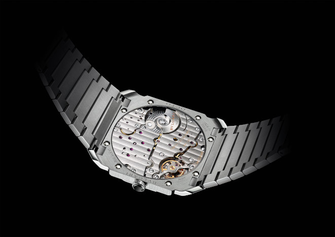 Both the Octo Finissimo Automatic Satin-Polished Steel and Satin-Polished Rose Gold are 5.25mm thick, whereas the Octo Finissimo Automatic Black Sandblast-Polished Ceramic is 5.50mm thick.