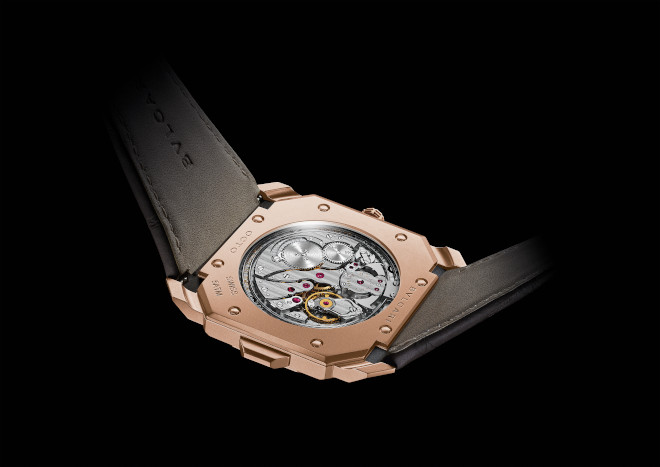 With all three of these powered by the 2.23mm thick automatic Calibre BVL 138 Finissimo with a platinum micro rotor and 60 hour power reserve, both the Octo Finissimo Automatic Satin-Polished Steel and the Octo Finissimo Automatic Satin-Polished Rose Gold feature polished black lacquer dials.