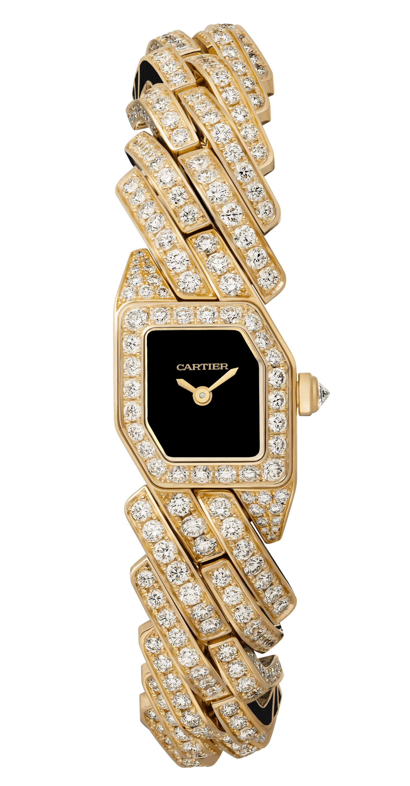 As well as these five models will form part of Cartier’s general collection, there is a model that is numbered and limited to fifty pieces. It is 18k yellow gold with the case and bracelet set with 580 brilliant-cut diamonds totalling 9.33 carats. The crown is also set with a brilliant-cut diamond (0.07ct). The dial for this model is black lacquer.
