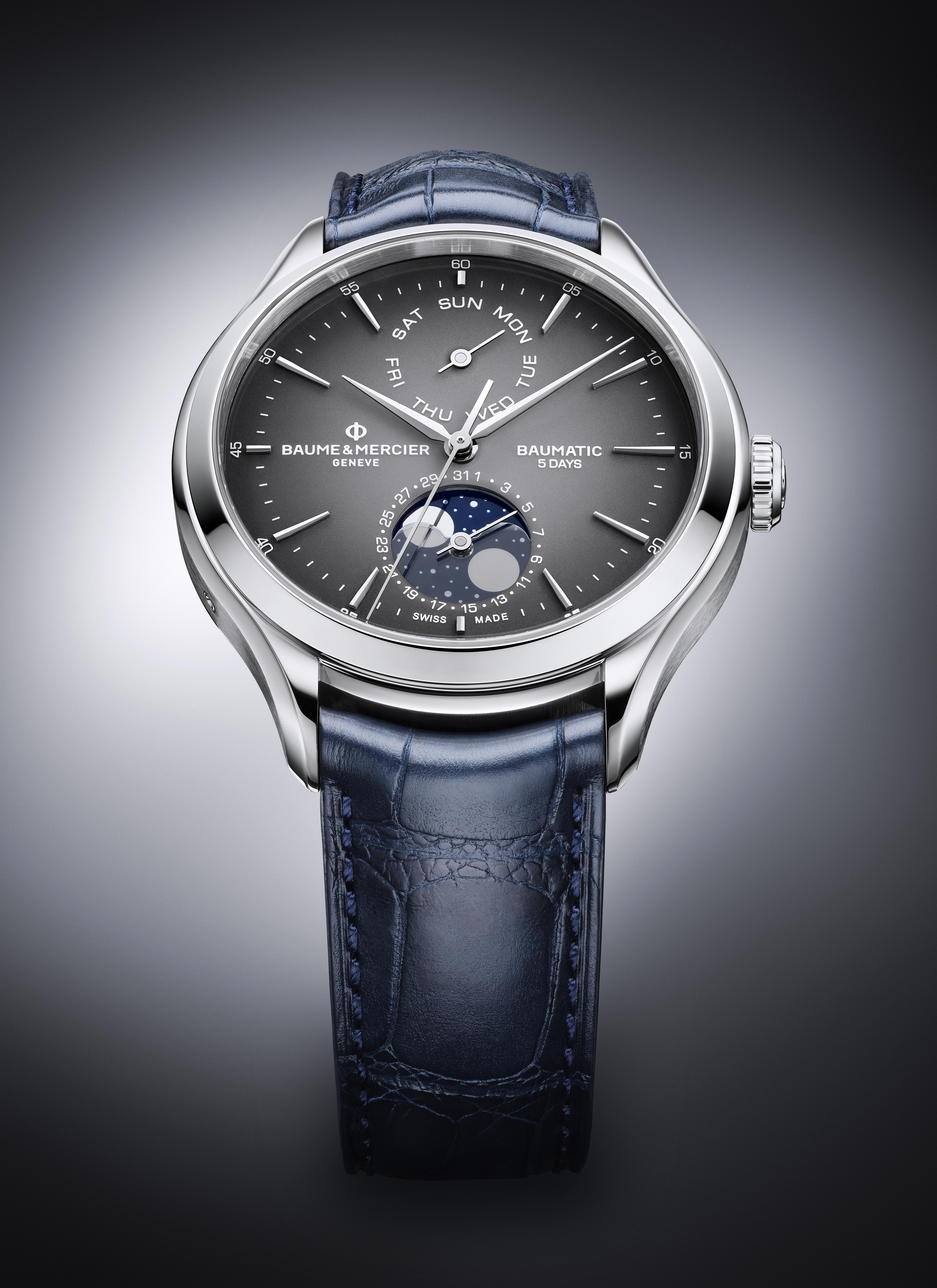 The Baumatic Moon-Phase/ Date comes on either the same blue alligator strap with triple folding buckle as the previous model or a satin-polished five-row bracelet. The pricing is RRP CHF 3,650/ AUD 6,150 on a strap and CHF 3,800/ AUD 6,450 on a bracelet, with both formally launching during October 2020.