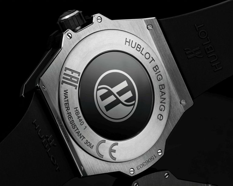 The Big Bang ℮ comes in a 42mm case in either satin-finished and polished titanium or micro-blasted and polished black ceramic, with a water resistance of 30m.