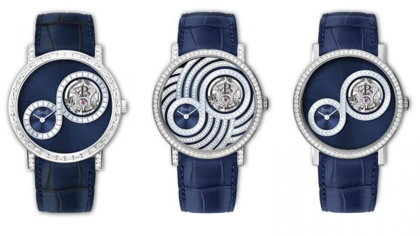 Now, they have launched the new Altiplano Flying Tourbillon Infinite Blue Collection, consisting of three models in 18 kt white gold 41mm-sized cases, all of which feature a flying tourbillon, dials and cases set with diamonds, and come on blue alligator straps.