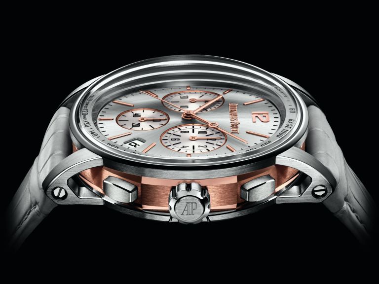 Bi-metal (18 kt pink gold and white gold) with grey lacquered dial