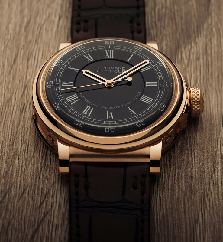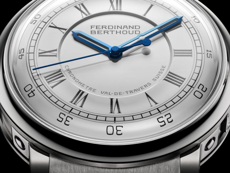 The inscriptions of “Ferdinand Berthoud” and “Chronomètre Val-de-Travers Suisse” are in painted black or white enamel, and require an additional firing on top of that required for the dial itself. Like its inspiration, there are Roman numerals for the hours and Arabic numerals for the minutes.