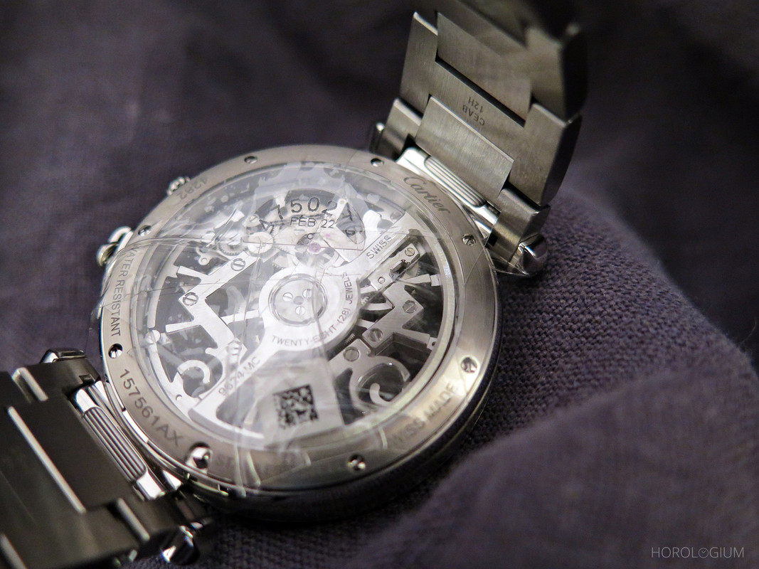 As is the case with all the new Pasha de Cartier, the Skeleton has the proprietary QuickSwitch system which enables an easy strap or bracelet change simply by pressing a button under the case. In the bracelet form, as per these photos, there is also the SmartLink size adjustment system which is also operated by a button that releases the bar to allow for removal/ addition of the links. My personal preference for the steel skeleton model is on the alligator strap rather than the bracelet simply because I think it looks better and highlights the Pasha case and lugs a bit more, but the bracelet is as one would expect from Cartier – it is solid quality, and sits comfortably.