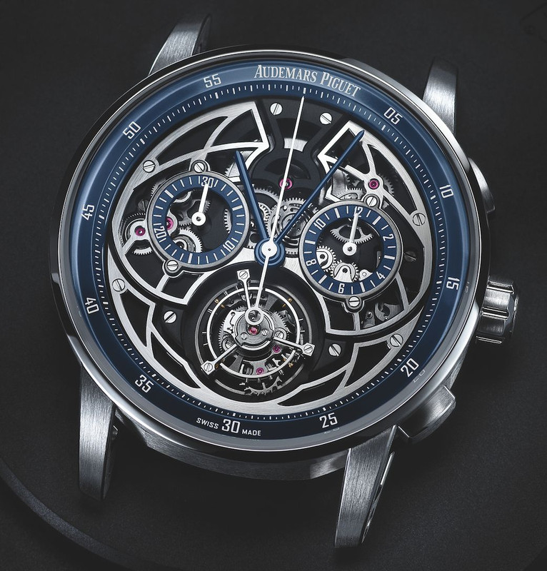 Audemars Piguet first combined a tourbillon with a chronograph in 1999 in the form of the limited edition (twenty pieces in Pt) Jules Audemars Tradition d’Excellence n°1, which had an in-house movement that combined a tourbillon, chronograph, and minute repeater. In 2003, they released their first chronograph tourbillon movement, the manually wound Calibre 2889, via the Royal Oak Ref. 25977. As recently as two years ago, the brand released the limited edition Royal Oak Offshore Tourbillon Chronograph 25th Anniversary. It used the then new in-house manually-wound Calibre 2947, that derived from the Calibre 2912.