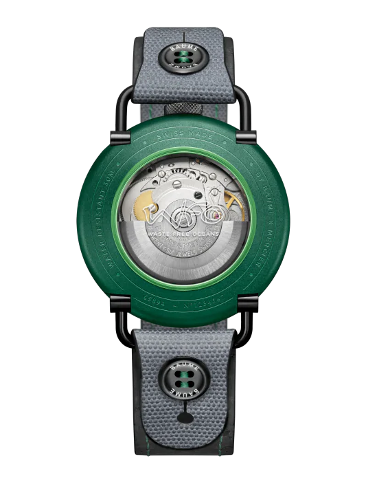 The BAUME Ocean Limited Edition is the first release in this new ‘home’. A collaboration with NGO Waste Free Oceans (WFO) and SEAQUAL® Initiative, it has been positioned by the brand has a reinforcement of their future intentions. Both WFO and SEAQUAL® Initiative work on a community level to help clean up oceans and through the process of recycling the recovered marine plastic into materials and products.