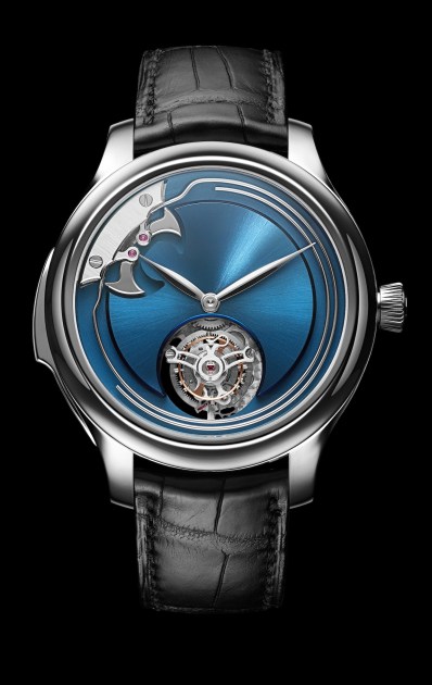 The hammers and chimes are notable for being curved and on the dial side, along with the one-minute tourbillon at 6 o’clock.