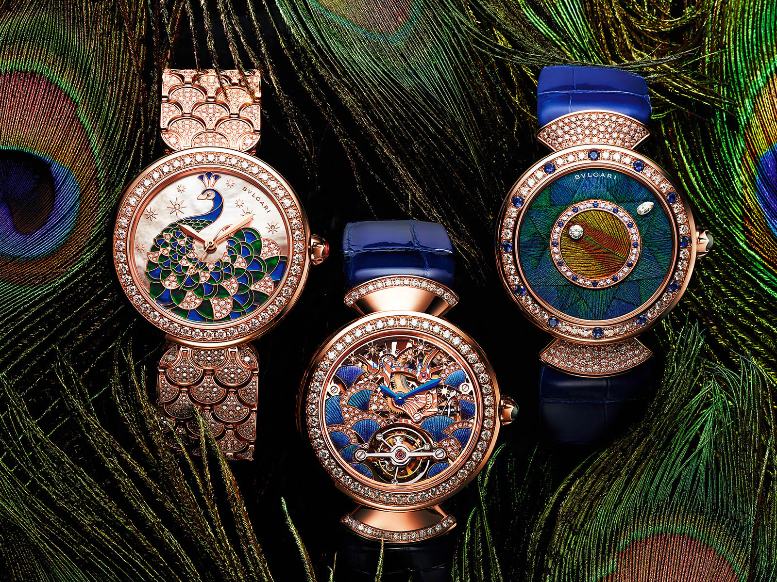 As a part of Bvlgari’s LVMH Watch Week releases were a trio of new Divas’ Dreams – the Peacock Dischi, Peacock Diamonds, and Peacock Tourbillon Lumière.