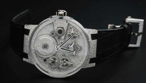Today’s new Sparkling variant is in a white gold 4mm-sized case and has a whopping 2,251 pavé stones (all VVS or VS with an F/ G rating), coming to a total of 5.90 carats. The diamond setting alone takes approximately 120 hours of meticulous work to complete.