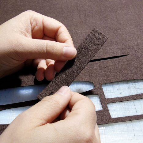 This new material is composed of 80% natural plant fibres. The cellulose used comes from Forest Stewardship Council (FSC)-certified trees grown in sustainably and responsibly managed European forests. The manufacturing process is in Italy using techniques utilised in papermaking. The colour is achieved through plant-based dyes.