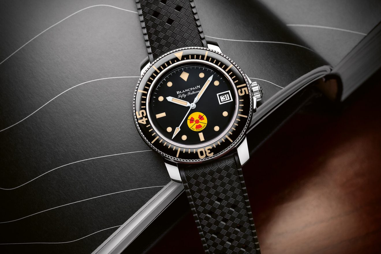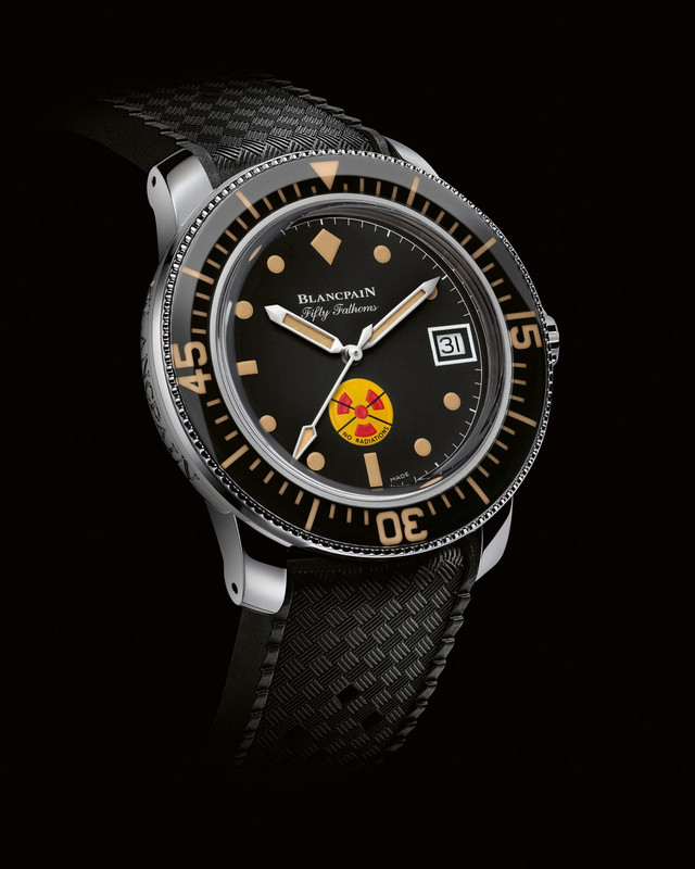 Now, Blancpain have announced a new limited edition re-interpretation of the 1960s’ Fifty Fathoms “no radiations” with its classic symbol now in a 2021 form.