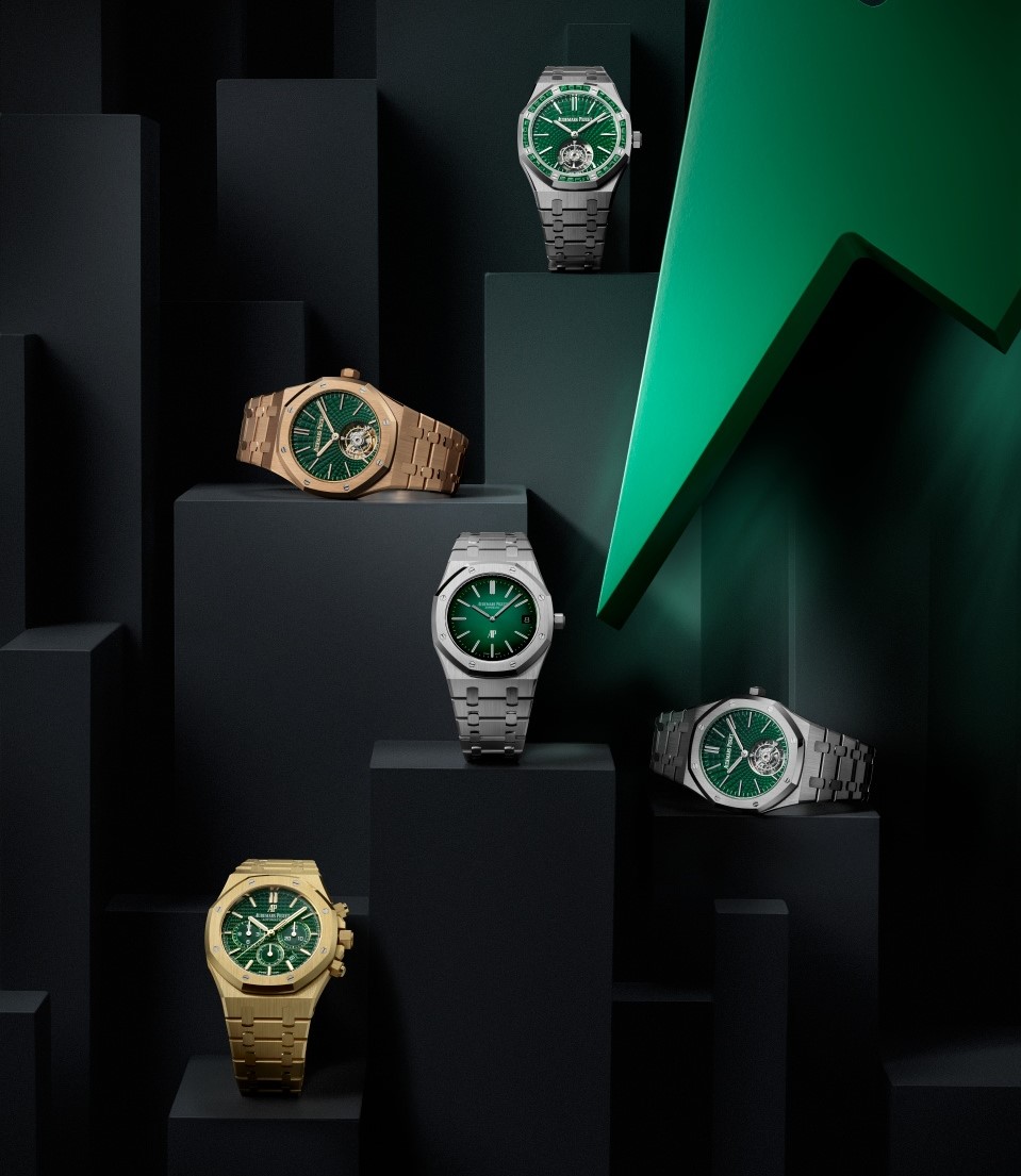 Green is not a colour unknown to Audemars Piguet dials, but in a continuation of this colour theme that has been making its way through watches of late, it now finds itself on the dials of five new Royal Oak models both limited and not.