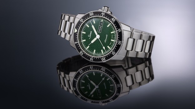 Sinn’s 104 St Sa pilot watch, with its clear dial and simple time, date, and day of the week functionality, has been given the ‘green treatment’, bringing the brand’s popular tool watch into this colour trend with a metallic dial.