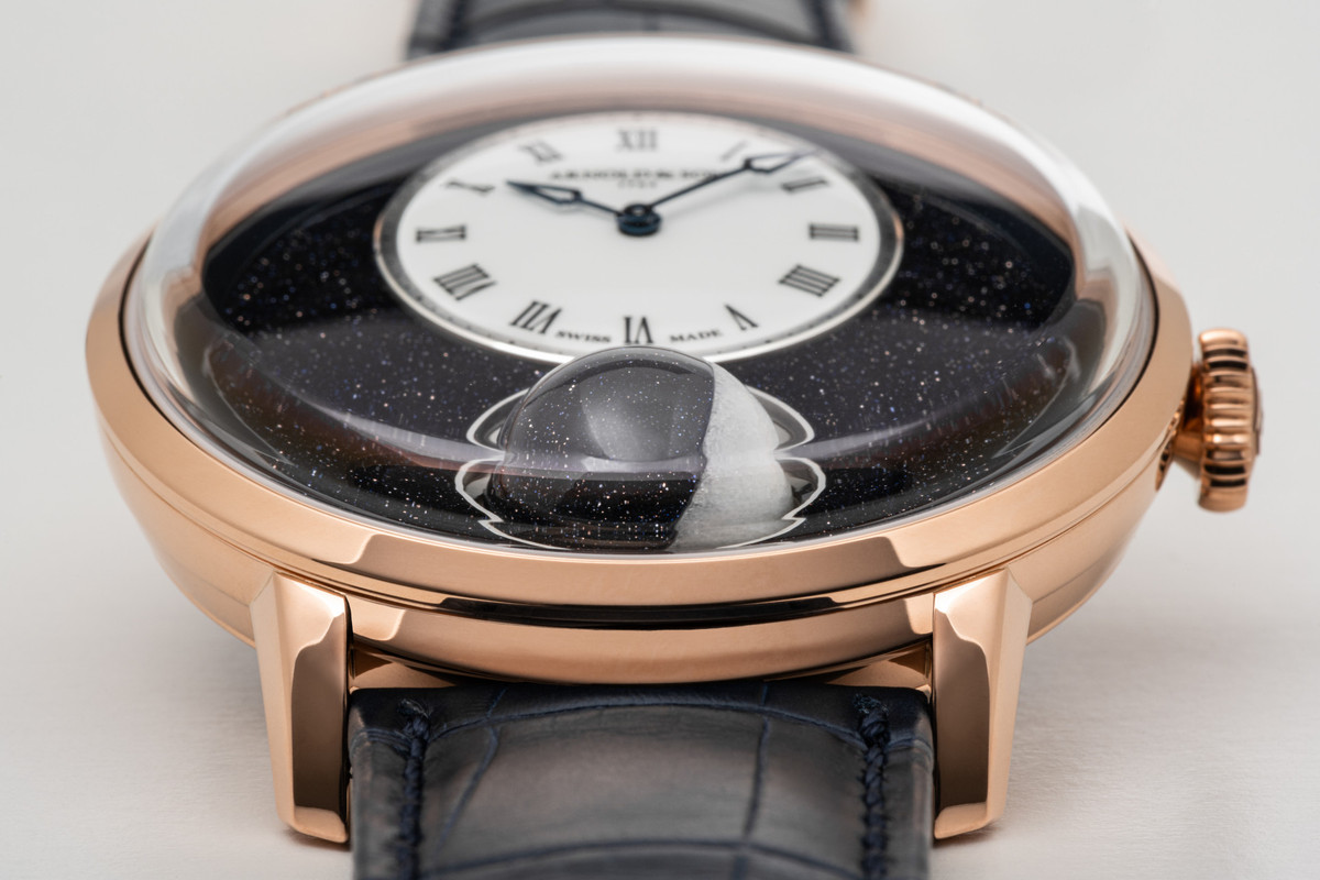 From inside the Neuchâtel Observatory (Observatoire Cantonal de Neuchâtel) during their Watches & Wonders Geneva 2021 launch, Arnold & Son CEO Bertrand Savary announced the new Luna Magna, featuring not just the brand’s first three-dimensional moon but also, the largest such moon to date – 12mm in diametre, in a wristwatch.