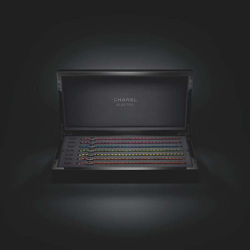 There are also five limited edition boxes, each containing seven monochromatic Electro Premières in neon pink, purple, blue, green, yellow, orange, or red. One for each day of the week, perhaps?