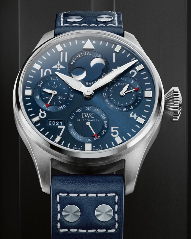 The new IWC Big Pilot Perpetual Calendar (Ref. IW503605RRP) comes on a blue calf strap with a steel deployant and has an RRP of AUD $43,000.