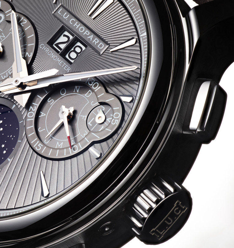 The new L.U.C. Perpetual Chrono comes on a grey nubuck calfskin strap with a grade 5 titanium clasp and is in a numbered 20 piece limited edition.