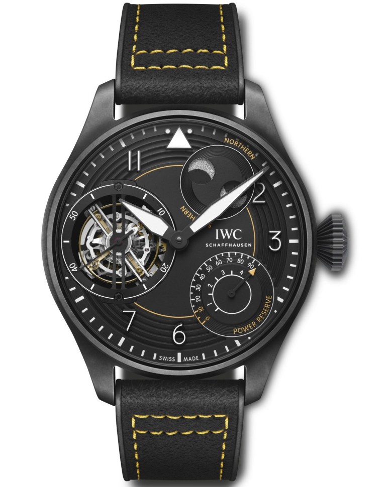 Motorsports are the inspiration behind the aesthetics of the new Big Pilot’s Constant-Force Tourbillon Edition “IWC Racing” (Ref. IW590501). Limited to fifteen pieces, this new watch combines IWC’s constant-force tourbillon with a matte black Ceratanium® case and the Big Pilot design.