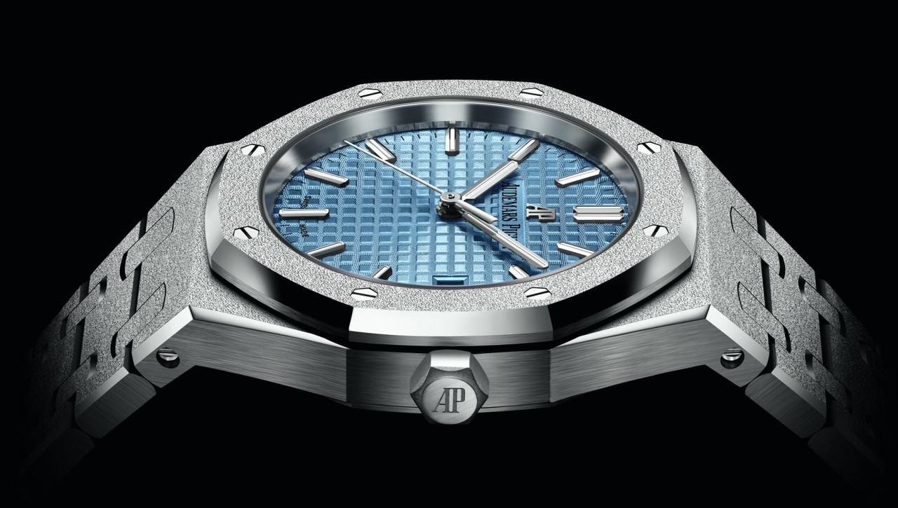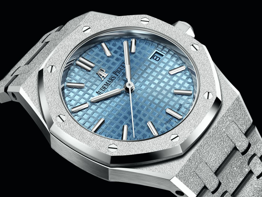 The second new Royal Oak, in the same size, is the Royal Oak Frosted Gold 34, the finishing of the white gold case something that Audemars Piguet have used before.