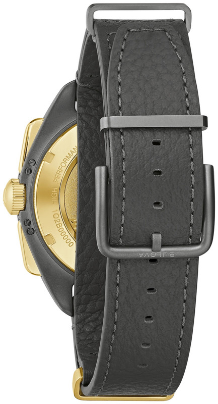 Inside is the same Japanese quartz Bulova Calibre NP20 with proprietary high-performance quartz technology beating at 262 kHz. The Bulova UHF quartz movements feature sweeping seconds hands.