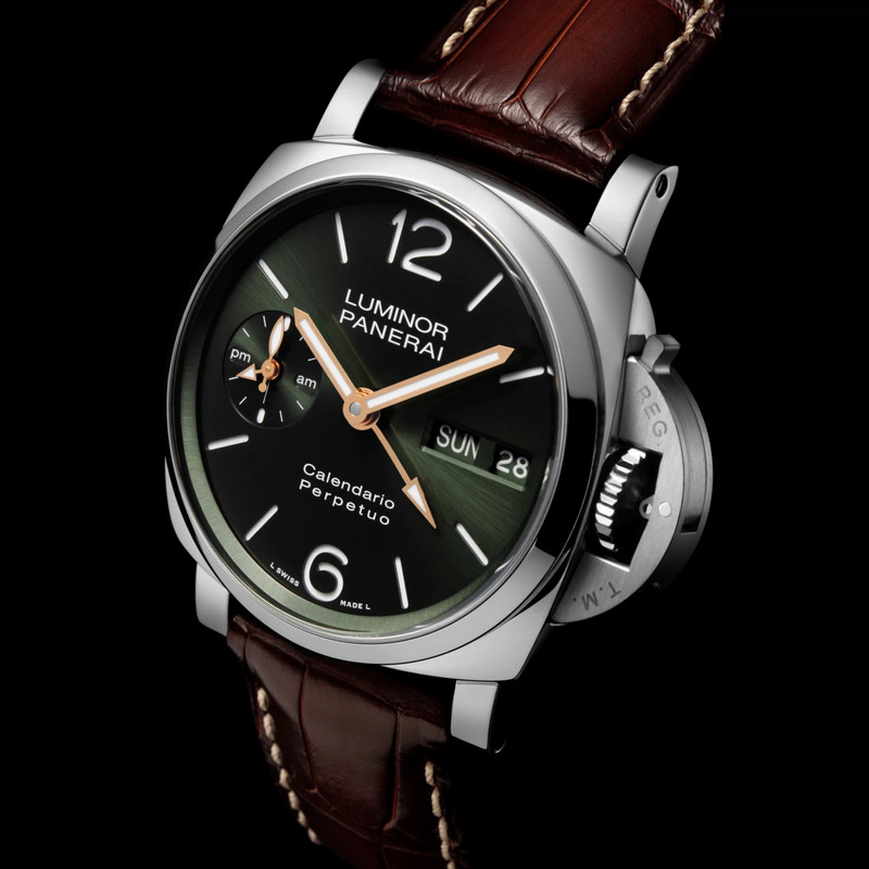 Coming on a reddish-brown alligator strap with ecru stitching, the Luminor Perpetual Calendar Platinumtech™ has an RRP of AUD 98,000 (incl. taxes)/ CHF 66,800 .