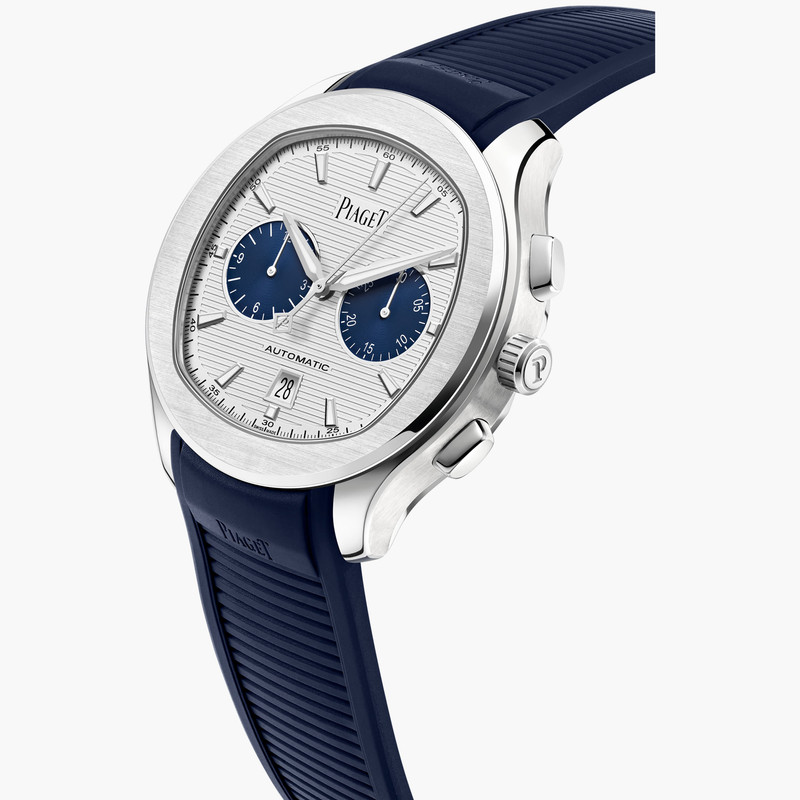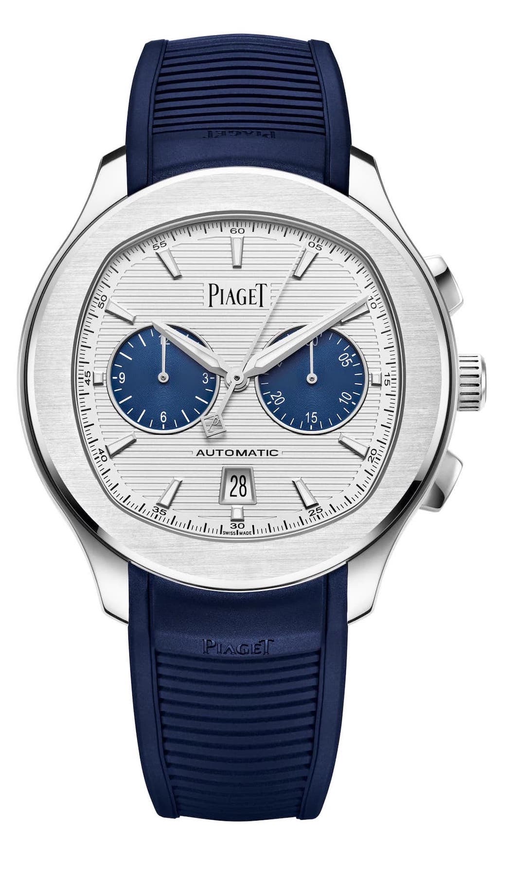 Piaget has added a new limited edition blue and silver ‘panda dial’ model to ts Polo Chronograph offerings, which currently includes dials in (dark) blue, or dark grey. This is, in fact, also the brand’s first foray into this style of dial.