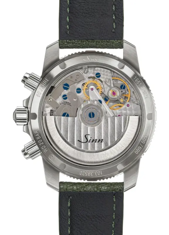 Behind the sapphire case back is the automatic SW 510 movement with a stop seconds hacking function, which beats at 28,800 VPH and has a power reserve of 48 hours. To mark the special anniversary, the edge of the glass back features the limitation number (xxx/600) as well as ‘1961-2021’ and ‘60 Jahre’ engraved.
