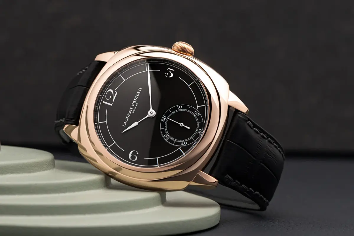 It is not without justification to say that the cushion-shaped case is already, in and of itself, simpatico with this, as this style of case shape is most commonly associated with the 1930s, but for this new Retro, they’ve decided to take some broader styling cues and exchanged the brand’s usual preference for simple indices or Roman numerals with elaborate Arabic numerals, combined with a large hour circle, another feature that is not commonly associate with Laurent Ferrier.